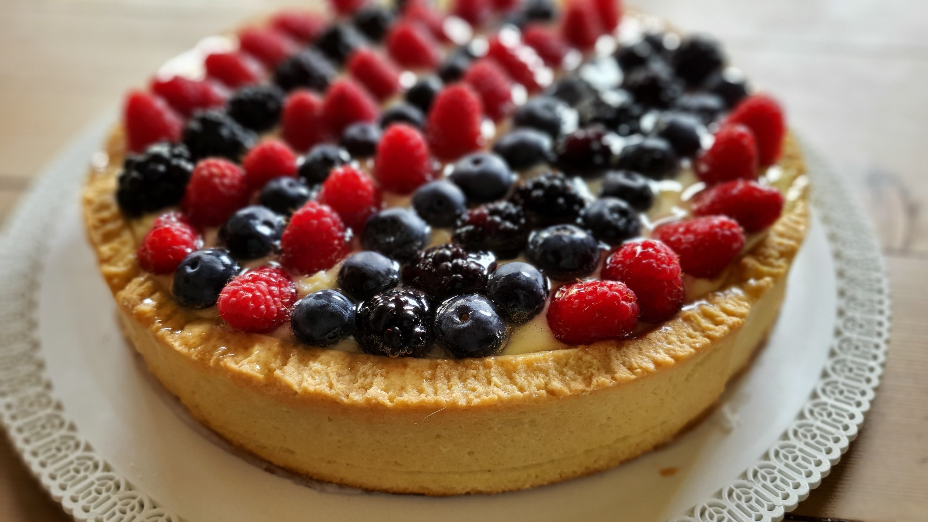 Questa torta è un classico di grande effetto. Non è per nulla difficile ma serve un po’ di organizzazione. Preparate prima la crema pasticcera per darle il tempo di raffreddare. poi accendete il forno e dedicatevi alla pasta frolla. Lavate la frutta, assemblate la torta e divertitevi a decorarla. Infine preparate la gelatina. Ponete in frigorifero e rimuovete la cerniera della tortiera solo quando la gelatina si sarà solidificata.