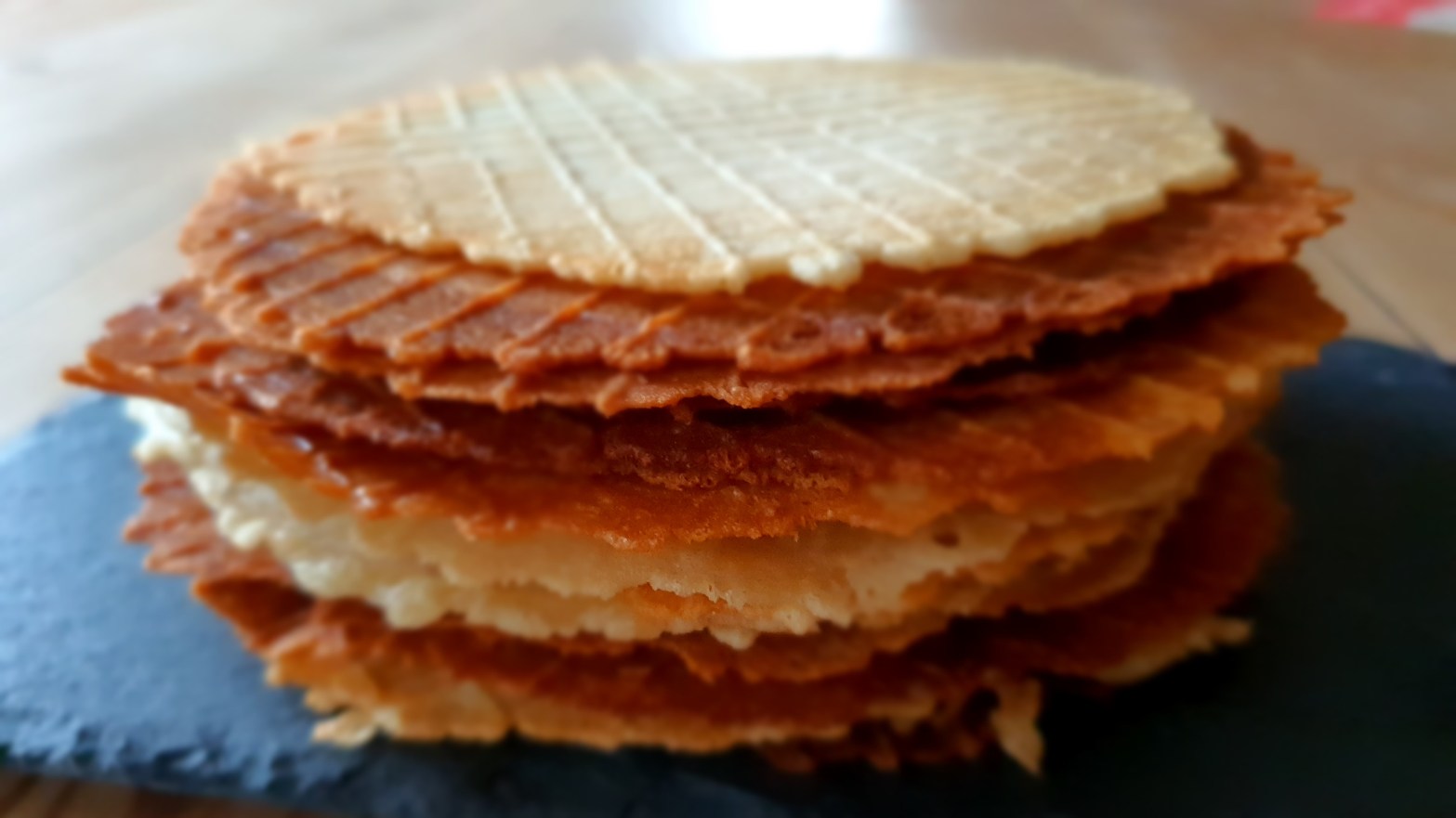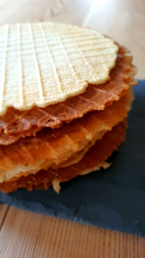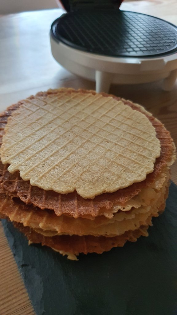 Utilizzando una cialdiera, prelevate un cucchiaino abbondante di impasto e cuocetelo per una trentina di secondi.