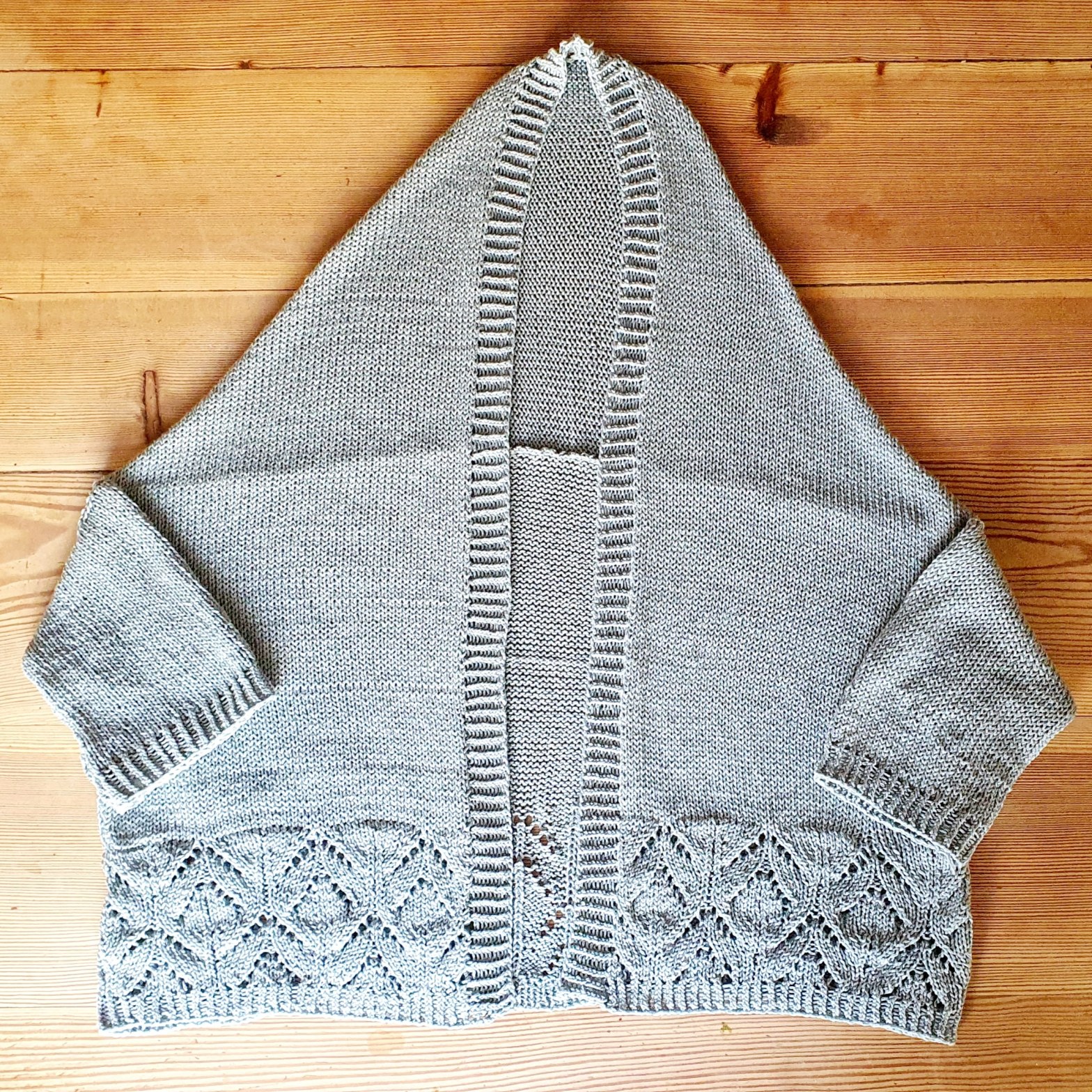 However, one downside is having to work with panels, as I prefer the three-dimensional aspect of circular needles.