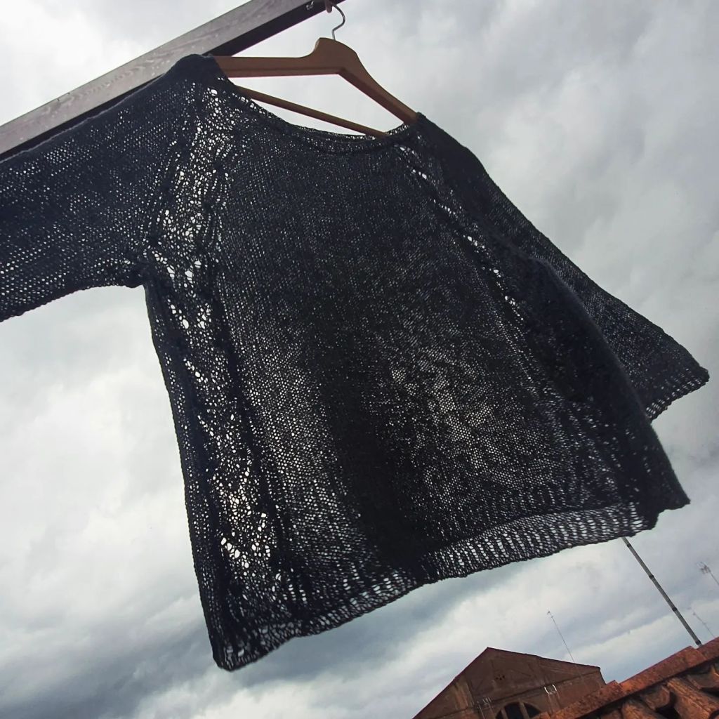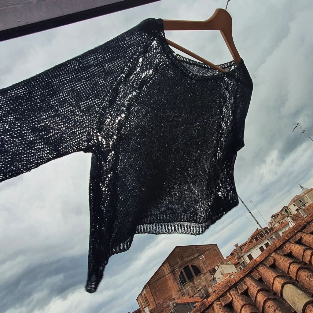 However, considering the scorching summers and high humidity in Venice I made a wise decision to switch to linen yarn. The natural coolness of linen feels refreshing against the skin.
